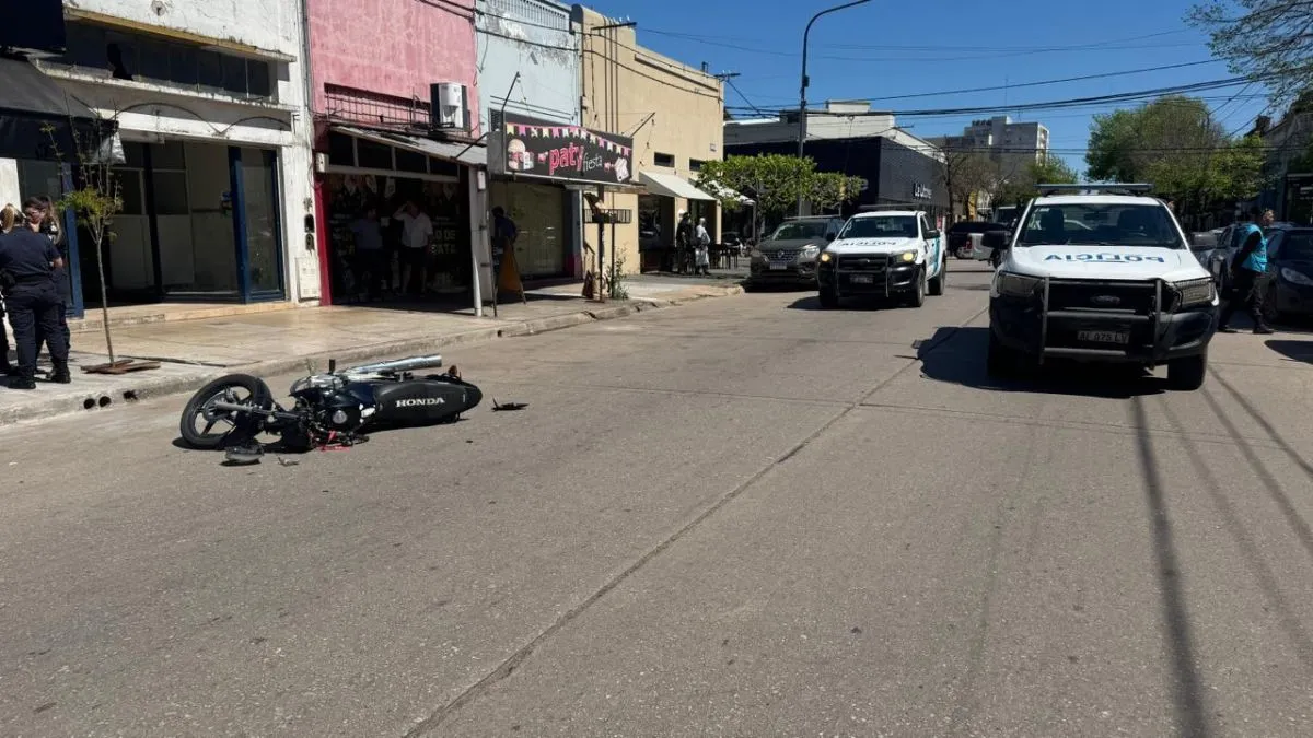 Hace instantes se produjo un accidente de tránsito en la calle Rivadavia al 1400 donde una moto Honda Titán 150 cc atropelló a un hombre mayor que cruzaba la calle a mitad de cuadra.