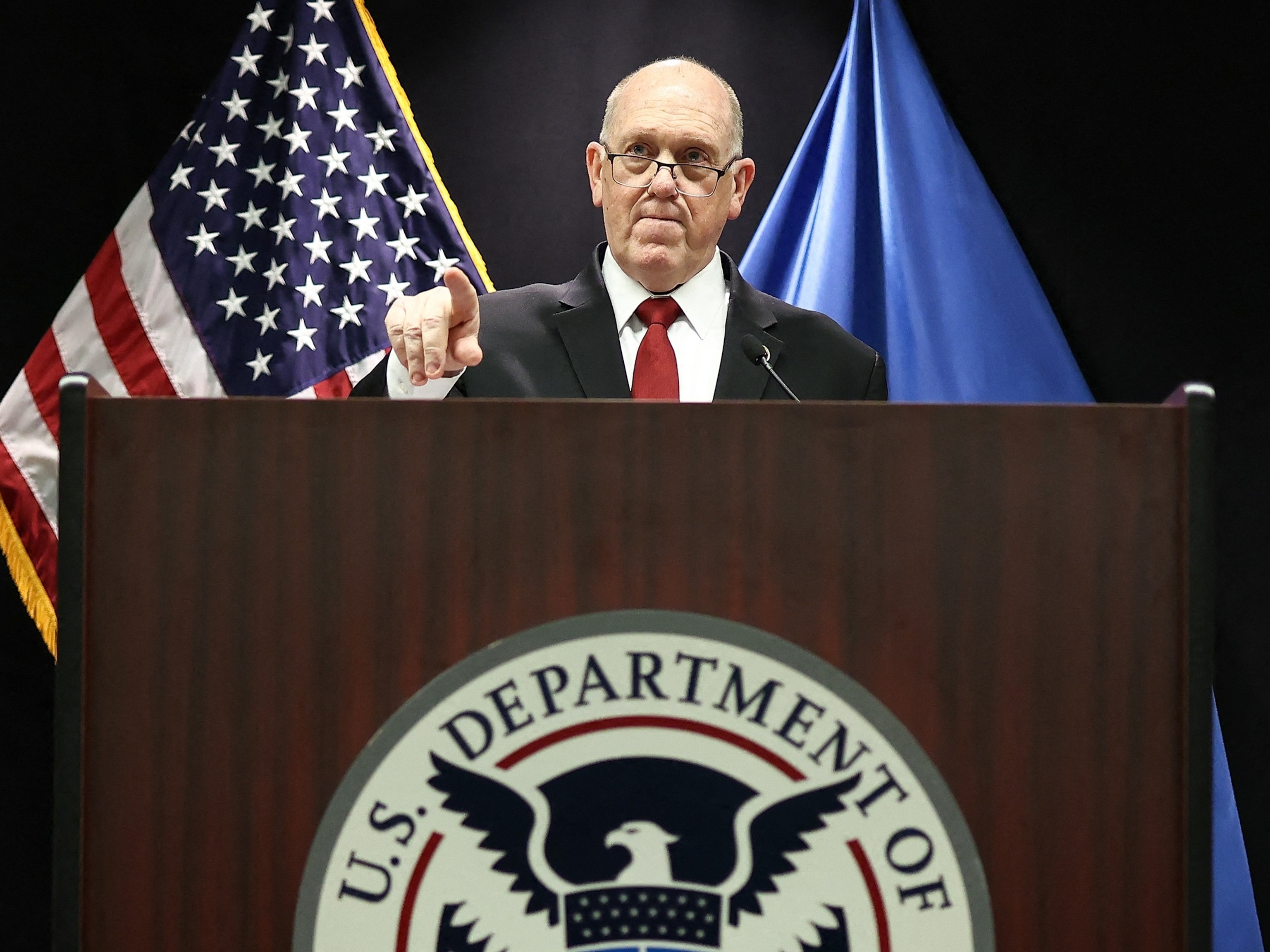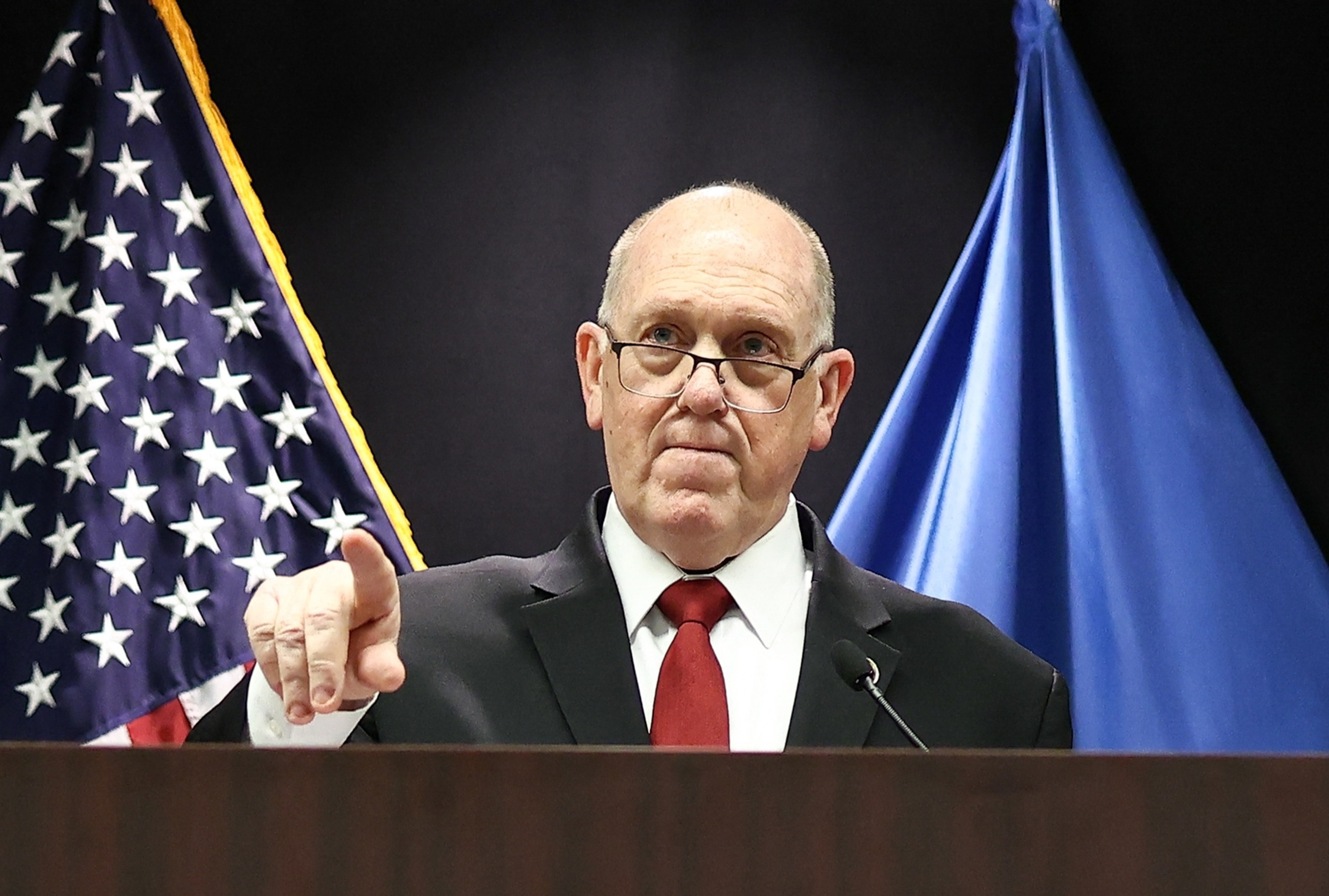 White House ‘border czar’ Tom Homan speaks during a press conference at the Bishop Henry Whipple Federal Building in Minneapolis, Minnesota, February 4, 2026.
