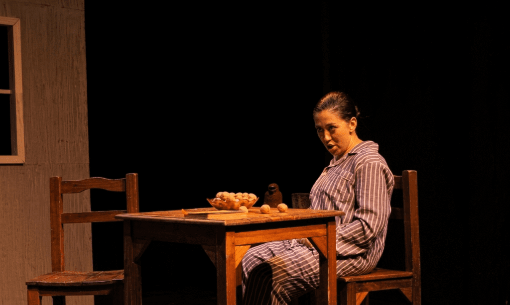 Las conversaciones con esa “voz interna” viran entre la ternura más pura y un instinto de supervivencia emocional, mientras la escenografía refuerza la idea de unhogar que es, al mismo tiempo, refugio y celda de recuerdos.