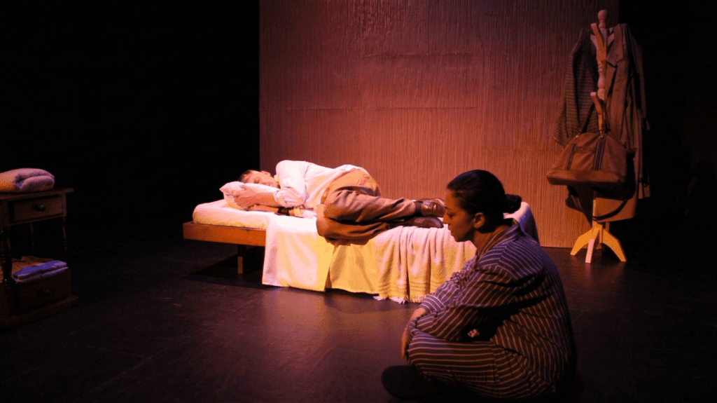 La puesta en escena nos traslada a la intimidad del hogar de Zuné (interpretado por Fabián Losada), un espacio que deja de ser físico para convertirse en un mapa emocional. Allí, el protagonista no está solo: convive con su propia conciencia, personificada de manera magistral por Mavy Yunes. Su “ella/él” es el espejo donde Zuné se fragmenta, oscilando entre la crudeza del instinto pulsional y una ternura expuesta, casi sin destino.