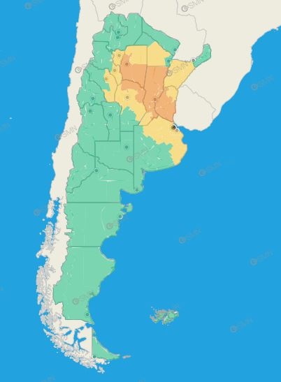 La alerta amarilla que rige este viernes para la Capital Federal, zonas de Buenos Aires, Corrientes, Entre Ríos, Santa Fe, Córdoba, La Rioja, Catamarca, Santiago del Estero, Tucumán, Chaco, Salta y Formosa.