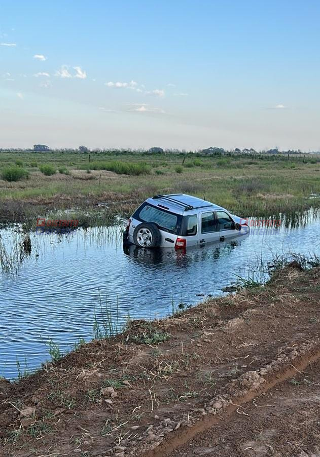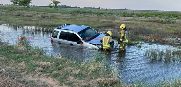 Esta mañana, pasadas las 7 horas, bomberos, SAME y Policía, acudieron al llamado por un automóvil que se encontraba dentro de la cuneta con agua, en el camino que conduce a la Estación Experimental INTA.