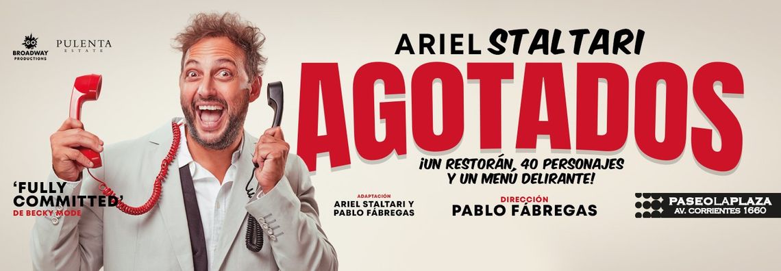 Ariel Staltari estrenó en abril el unipersonal «Agotados» -en el Paseo La Plaza de la Ciudad de Buenos Aires- en donde compone 40 personajes diferentes. Una obra muy complicada de hacer para un actor, porque implica un desgaste emocional y psíquico muy importante-además del físico- pero que le permite mostrarse en plenitud sobre el escenario.