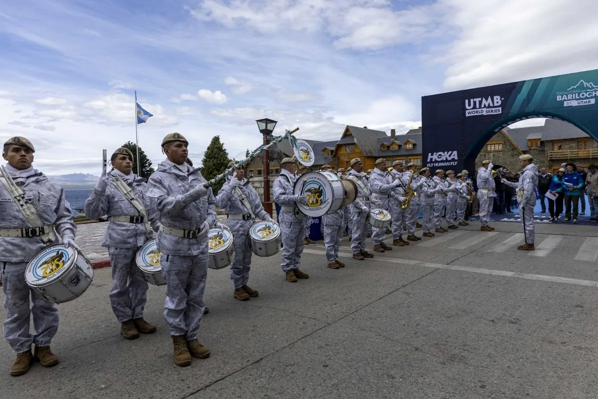 La banda de la Escuela Militar de Montaña acompañó la apertura de UTMB en Bariloche (foto: Eugenia Neme).