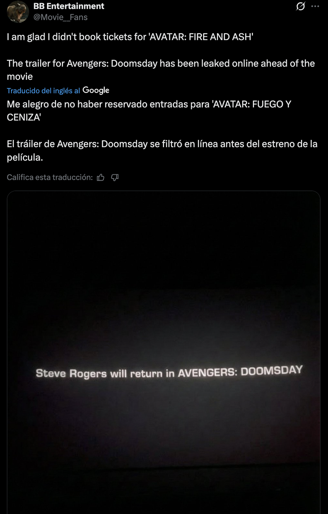Esta estrategia no sólo potenciaría el impacto de «Avengers: Doomsday», sino que también refuerza el rendimiento de «Avatar: Fuego & Cenizas», ya que Disney buscaría convertirla en otro fenómeno de taquilla.
