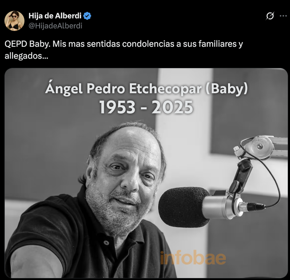 Sin embargo, poco después, en redes comenzó a circular una imagen falsa anunciando su muerte, lo que generó confusión y preocupación entre sus seguidores “Esta foto es mentira. Colgaron que me había muerto” expresó indignado al aire.