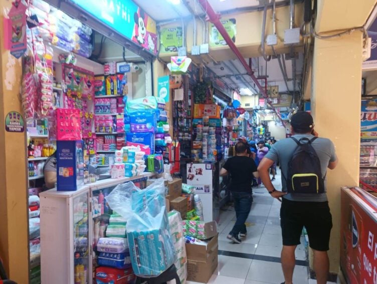 El comercio informal de cosméticos y artículos de belleza es un buen negocio. La mercadería tiene una gran salida y el trasiego es permanente. La Cámara de Comercio de Lima reportó pérdidas por más de US$263 millones por falsificación de estos productos solo en 2024. Crédito de la imagen: Zoraida Portillo.