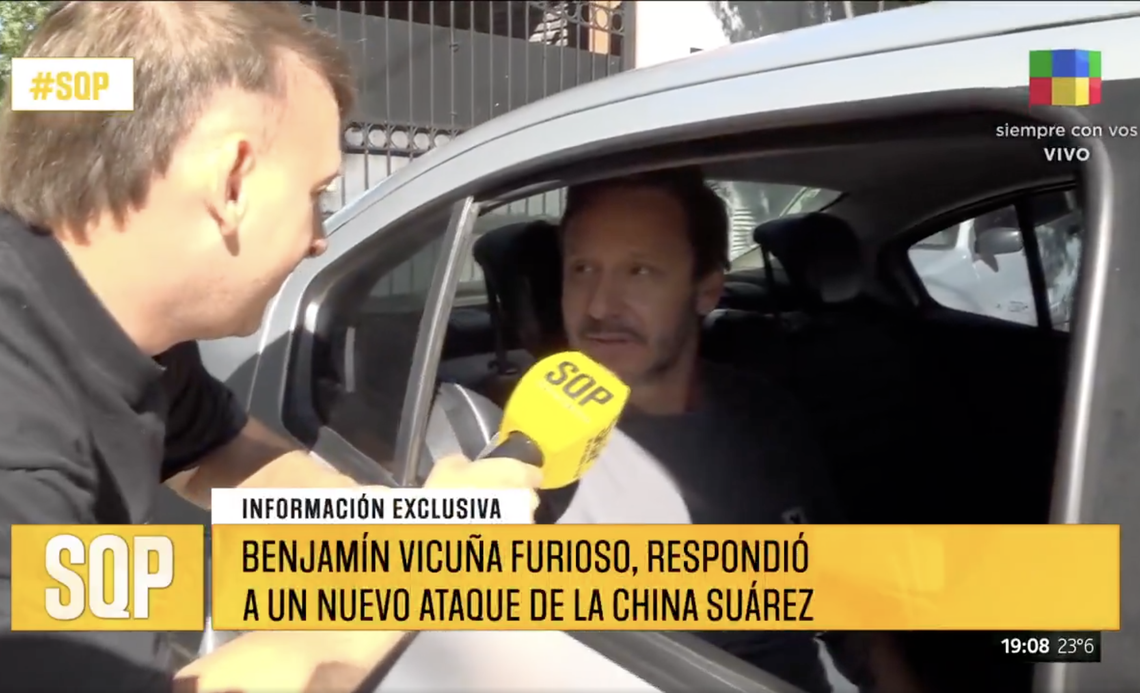 El actor chileno Benjamín Vicuña rompió el silencio y habló con Rodrigo Bar -el cronista de «SQP – Sálvese Quien Pueda», de América TV- sobre la nueva escalada mediática que volvió a involucrarlo luego de las recientes entrevistas de «La China» Suárez en sus entrevistas con Mario Pergolini y Moria Casán.
