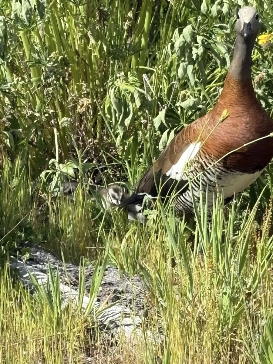 El equipo de Bomberos de Manejo del Fuego rescató a pichones de cauquén que habían quedado separados de su madre y en riesgo. Tras estabilizarlos, pudieron reencontrarlos con la hembra adulta