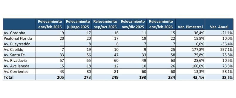 Durante el primer bimestre de 2026 se detectaron un total de 284 locales en venta, alquiler o cerrados