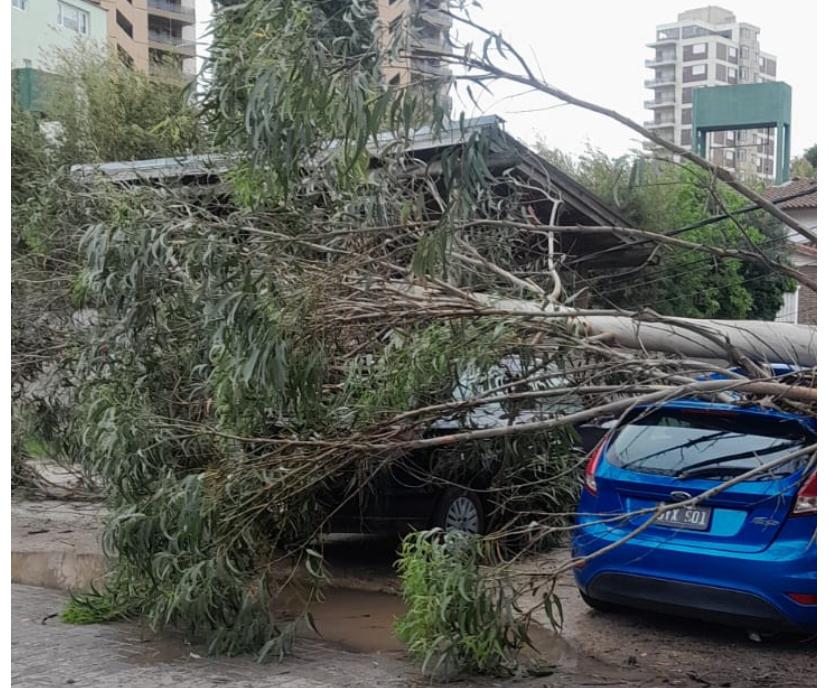 En el lugar trabajaron Bomberos Voluntarios y de la Secretaría de Seguridad, para retirar las ramas y poder sacar los rodados que sufrieron daños materiales; no se registraron heridos.