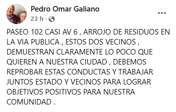 31-10-2025 Omar Galeano, edil del oficialismo, publicó en sus redes la contundente imagen. «Demuestran claramente lo poco que quieren a nuestra ciudad», señaló.