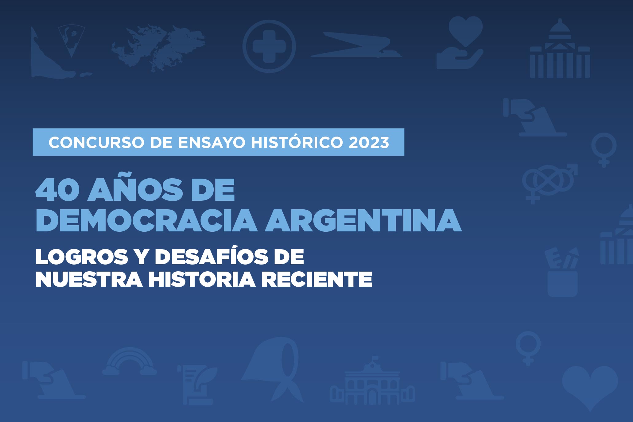 El Congreso de la Nación lanza la edición 2023 del Concurso de Ensayo Histórico que lleva como nombre “40 años de Democracia argentina: logros y desafíos de nuestra historia reciente”, cuyas obras ganadoras serán premiadas y publicadas.