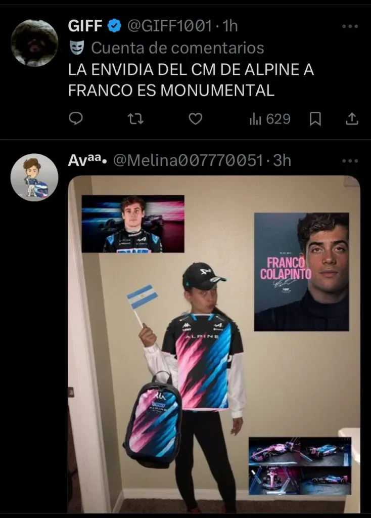 Esta sutil situación no pasó desapercibida y generó un fuerte repudio, fundamentalmente porque el resultado final de la práctica contó una historia opuesta. Por eso, la reacción en las redes sociales fue inmediata. El posteo superó las 300 mil visualizaciones y acumuló más de 300 comentarios en cuestión de horas. La mayoría de las respuestas provinieron de seguidores argentinos que, molestos con la imagen, salieron a defender a Colapinto.