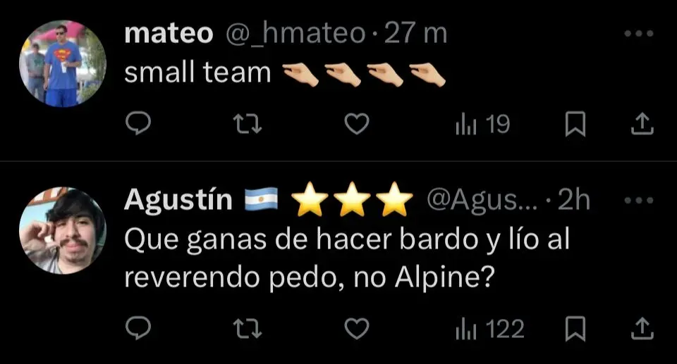La reacción que generó la publicación de Alpine