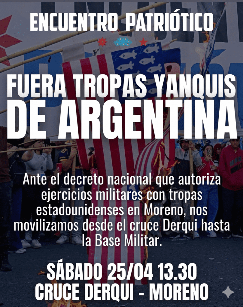 Este sábado 25 de abril, el partido de Moreno será el epicentro de una jornada de protesta denominada «Encuentro Patriótico». La convocatoria, pactada para las 13:30 hs en el Cruce Derqui, tiene como objetivo marchar hacia la Base Militar local en repudio al Decreto de Necesidad y Urgencia 264/2026, publicado el pasado 17 de abril en el Boletín Oficial.