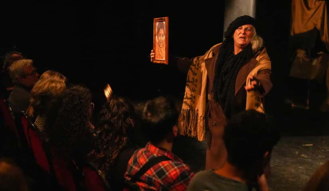 La errante está habitada por esa Madre Coraje que emerge de la oscuridad del escenario para construir una relación íntima y directa con cada espectador. Por momentos, da la sensación de que la actriz le habla solo a uno, que el espacio se achica hasta convertirse en una conversación personal.