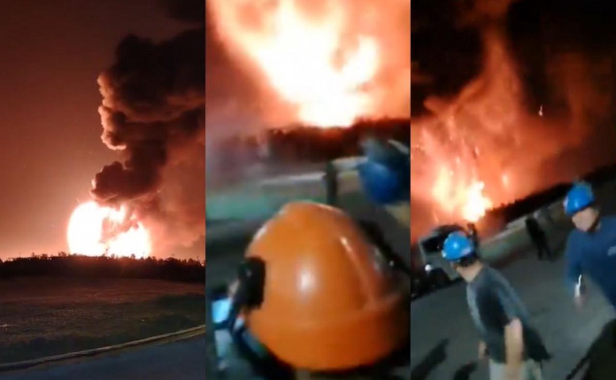 El impactante fuego y los ruidos de las explosiones dan cuenta de que se trata de un grave siniestro que podría tener consecuencias de magnitud.