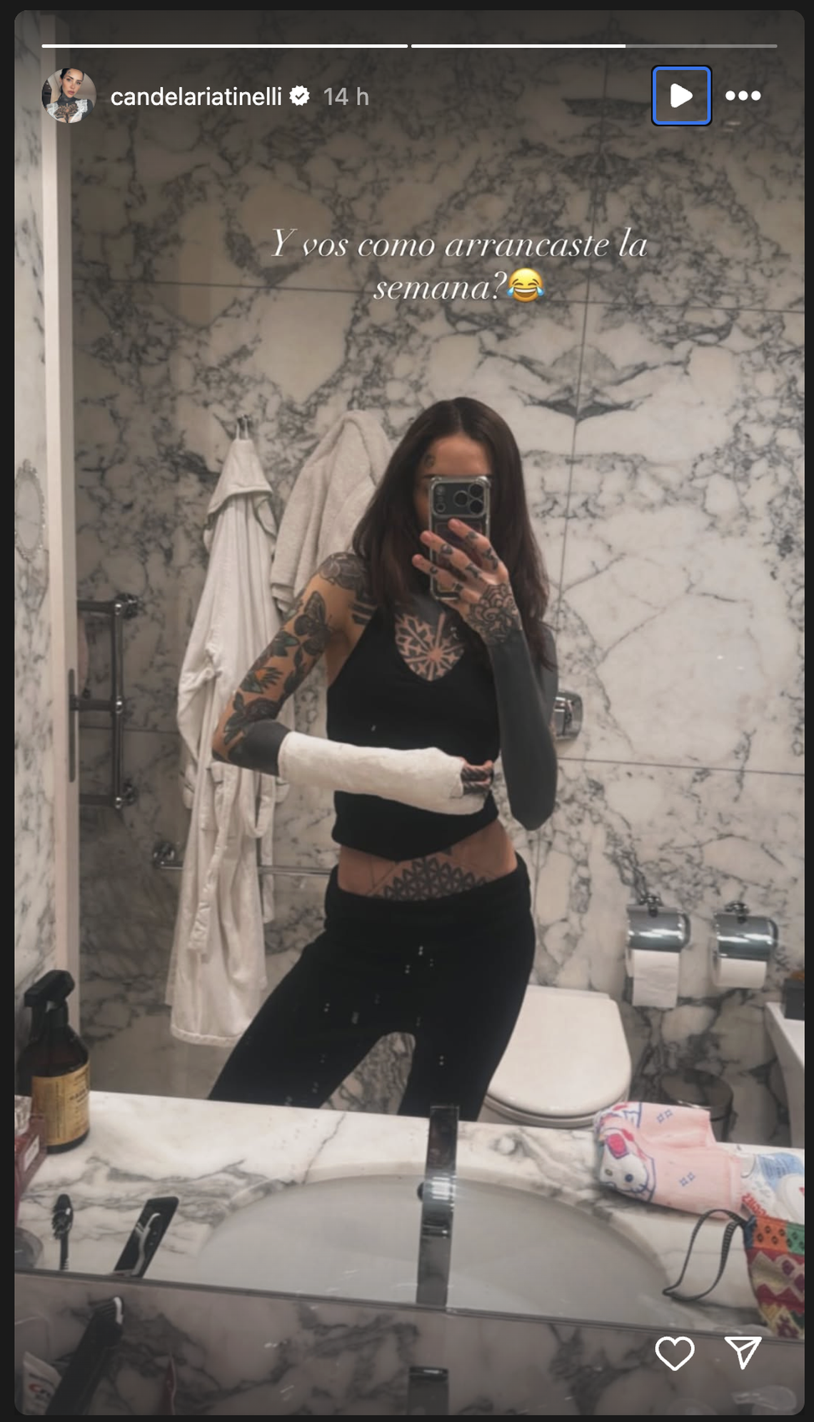 Después de conocerse la noticia, la propia protagonista de la historia subió una fotografía a su cuenta personal de Instagram, en donde se la puede ver enyesada en su mano derecha y un texto en donde ironizaba sobre la situación que había vivido “Y vos como arrancaste la semana?”, acompañado por un emoji de carcajada.