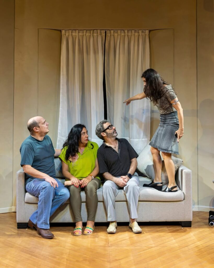 El texto de la obra nos dispara preguntas que incomodan desde el primer minuto: ¿Qué espera el público cuando va al teatro? ¿Cuánto de lo que vemos se completa realmente en nuestra mirada y cuánto es solo una pose? Al ver a los personajes encimarse, pisarse las palabras y simular que «rescataron» escenas que claramente no entendieron, nos vemos obligados a preguntarnos: ¿Cuántas veces hemos sido nosotros esos personajes, tratando de decir algo que parezca que entendimos para no quedar fuera del círculo?
