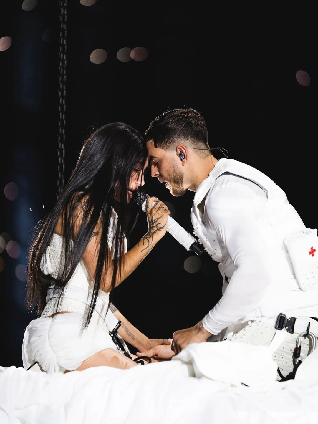 En medio de la arquitectura circular, luces y coreografías de su show Monumental 360°, ese gesto íntimo generó un silencio que conmovió a todos. El público acompañó con aplausos el abrazo entre ambos, consolidando la imagen de una pareja más fuerte y unida a través de la adversidad.