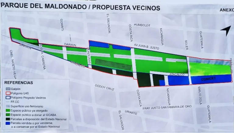 Estos terrenos nacionales lindan con un sector de tierra pública ferroviaria dispuesta al Gobierno porteño. En ese sector los vecinos piden la construcción del Parque del Maldonado – Bosque Urbano, proyecto que tiene el objetivo de mejorar la calidad de vida en el barrio, que desde hace años es epicentro de un boom inmobiliario.