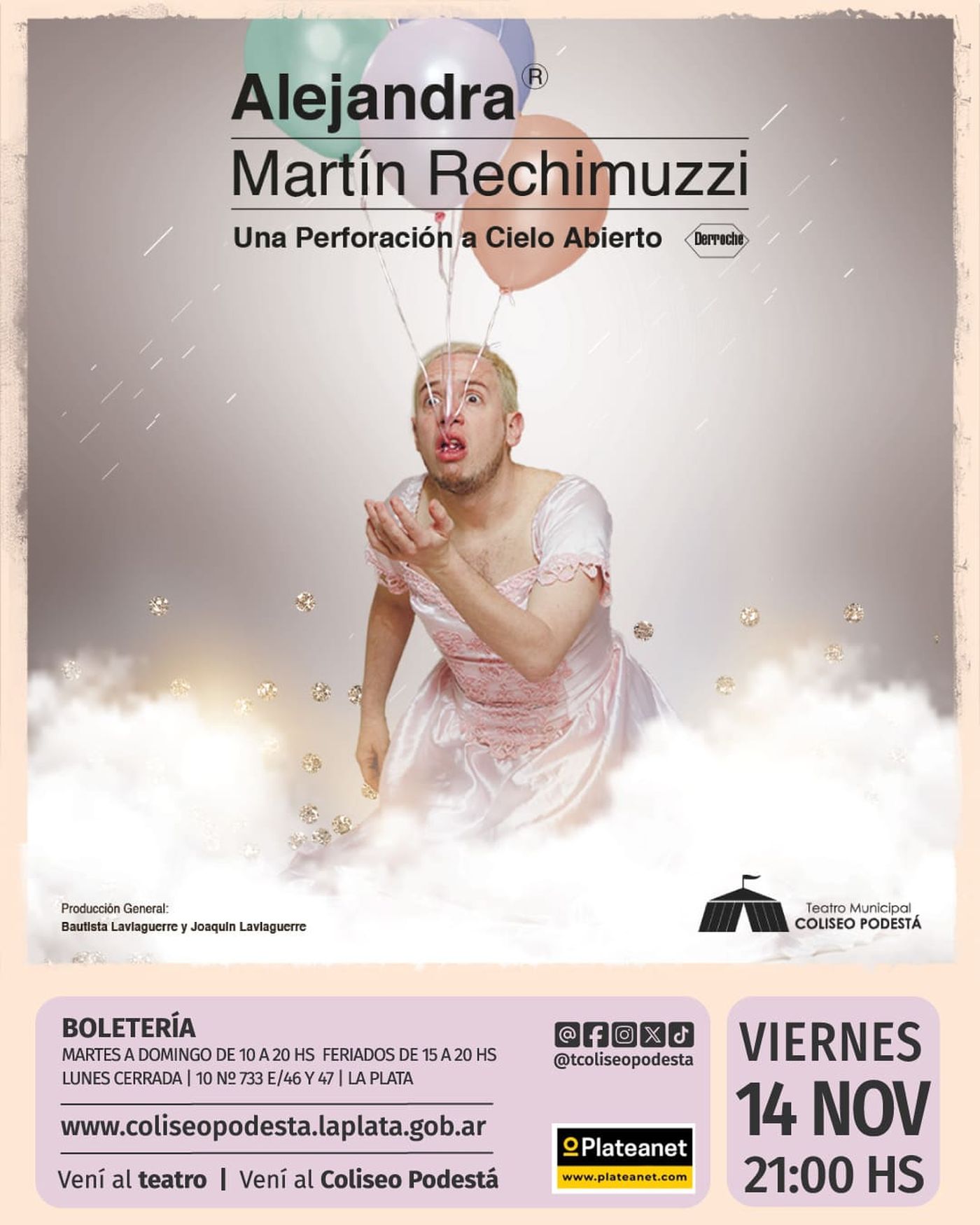 El Teatro Coliseo Podestá de La Plata estrenará en noviembre una nueva programación con una amplia variedad de espectáculos. Entre las propuestas se destacan artistas como Ariel Staltari con su obra «Agotados», Martín Rechimuzzi, Noelia Sinkunas, Ismael Serrano, Lisandro Aristimuño, Connie Ballarini y la obra Lo mejor del Teatro Negro de Praga.