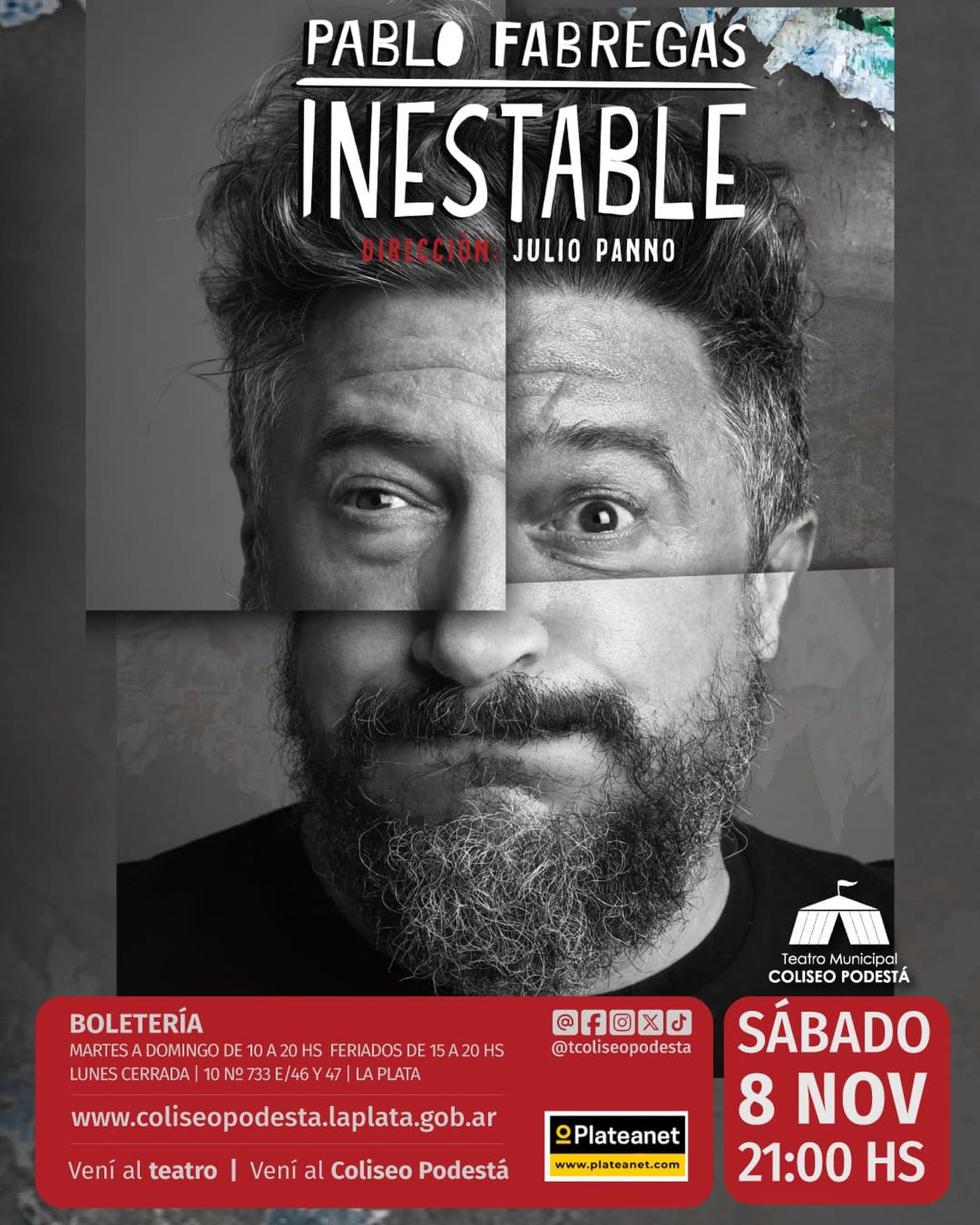 - Inestable con Pablo Fábregas – Sábado 8 a las 21