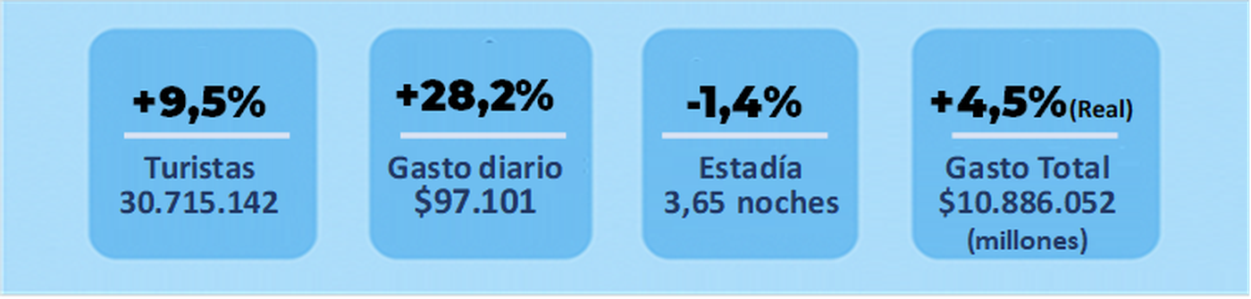 En promoedio, los turistas gastaron $97.101 por día, un valor nominalmente superior al año anterior, aunque menor en términos reales al considerar la inflación. El consumo mostró mayor selectividad por parte de los viajeros.