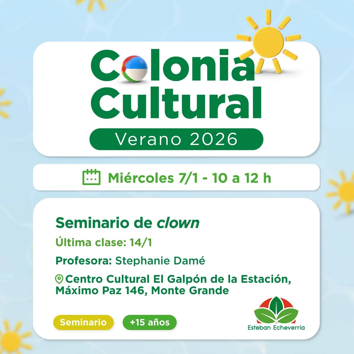 Este miércoles 7 de enero hay dos propuestas destacadas. Por un lado, de 10 a 12, se realiza el Seminario de clown, a cargo de la profesora Stephanie Damé, en el Centro Cultural El Galpón de la Estación (Máximo Paz 146), destinado a mayores de 15 años. Por la tarde, de 18 a 20, se dicta de manera virtual el curso Historia del cine argentino, coordinado por María Eugenia Díaz, dirigido a mayores de 18 años.