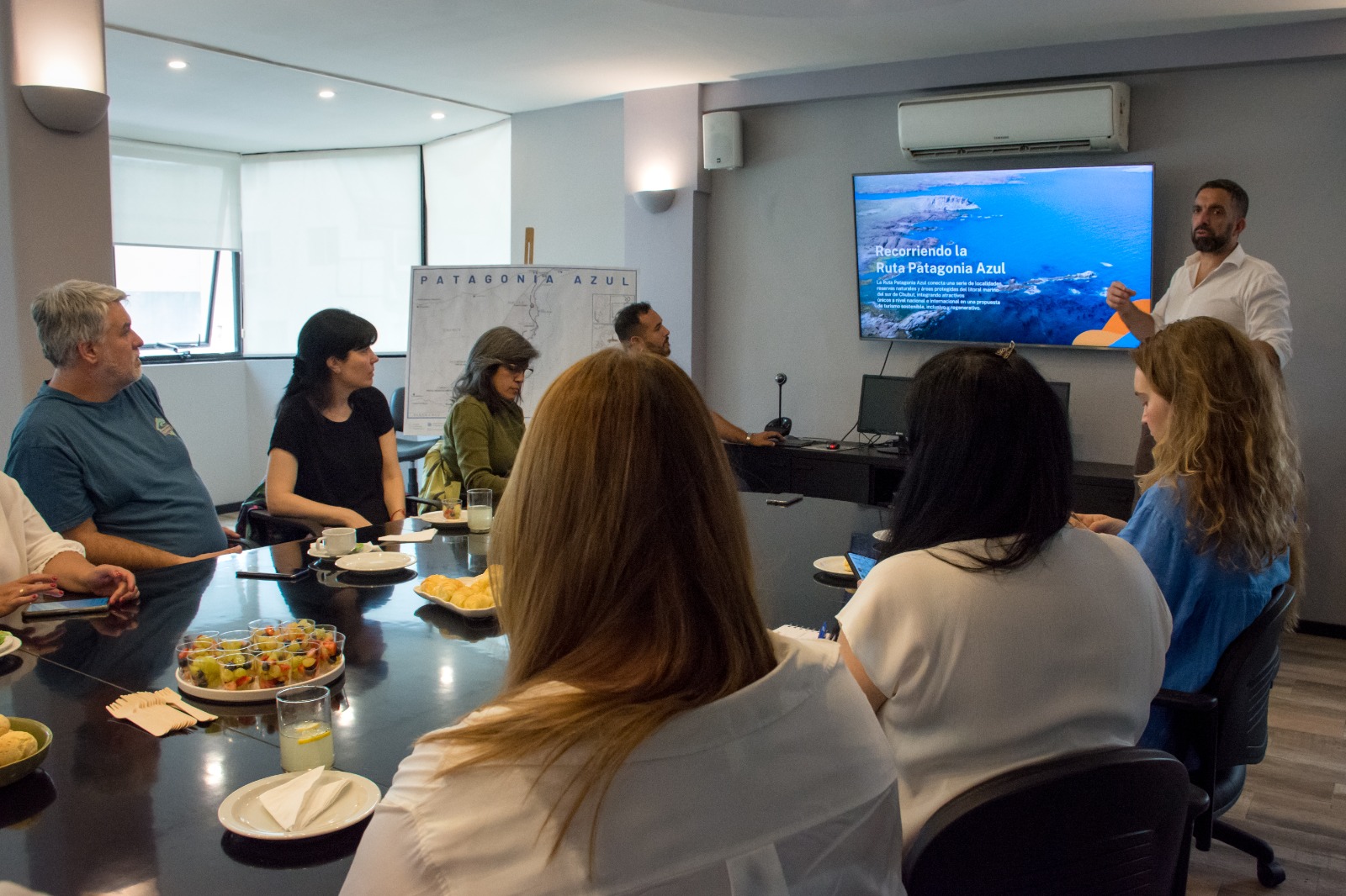 La capacitación estuvo a cargo de Sebastián Sarsfield, director regional de Turismo de la Delegación CABA, y María Mendizábal, coordinadora de Turismo del Proyecto Patagonia Azul. La exposición combinó una mirada integral de la estrategia provincial y una presentación detallada de la experiencia Patagonia Azul.