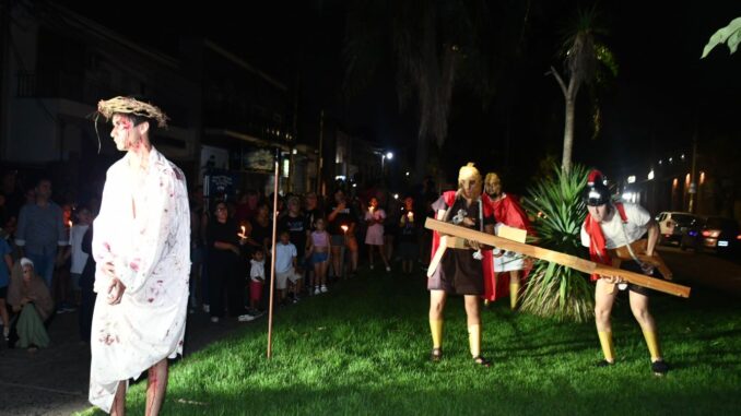 Se llevó a cabo por segundo año consecutivo el Via Crucis viviente en las calles del Casco céntrico de la ciudad, en el marco de una ceremonia que contó con la organización de las parroquias “Nuestra Señora de la Medalla Milagrosa” y “Nuestra Señora del Carmen”, instituciones intermedias, vecinos y vecinas rodriguenses.