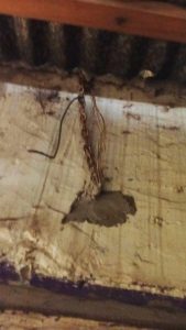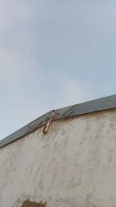 Por ese motivo perforaron la pared y en la urgencia ataron con alambre y cadenas, lo que tenían a mano, los tirantes a la pared hasta que mañana con el viento calmo lo repararán.