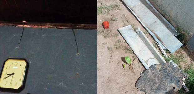 La propia familia contó a Distrito Interior que debieron poner alambres y cadenas, lo que tenían a mano, porque el fuerte viento que sopla desde la mañana les había comenzado a producir daños en el techo.