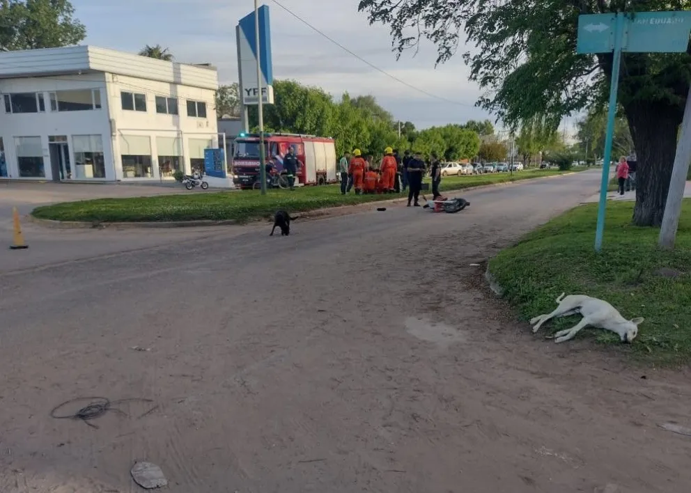Una motocicleta conducida por Daniel Márquez, quien iba acompañado por Melina Dacundo, impactó contra un perro que se cruzó repentinamente en la calzada. A raíz del choque, el animal falleció en el acto.