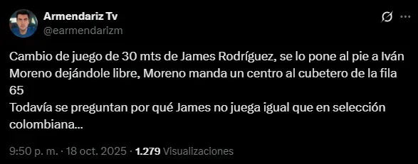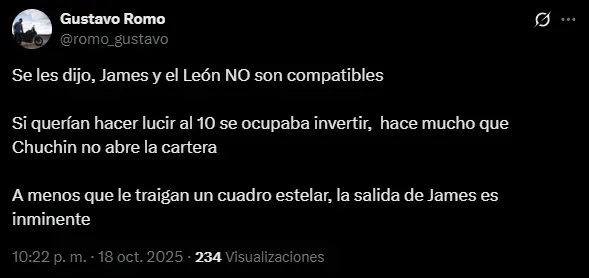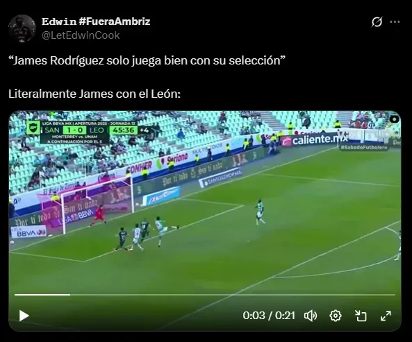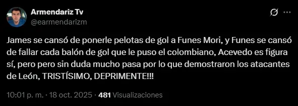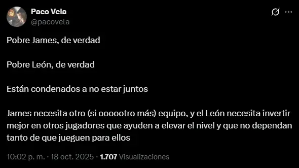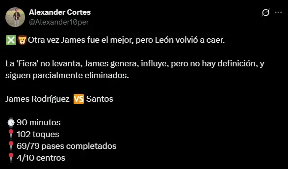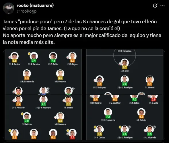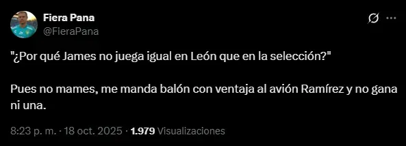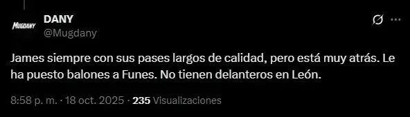 Al mismo tiempo, además de pena, el sentimiento que sumergió a la afición de León ha sido la preocupación de que James Rodríguez no continúe en 2026: el público esmeralda sabe que el colombiano es su única esperanza y le rogaron su renovación. En los posteos de la cuenta oficial y en el propio perfil del ’10’, la fanaticada se arrodilló ante su capitán y pidió por su extensión contractual con el club.
