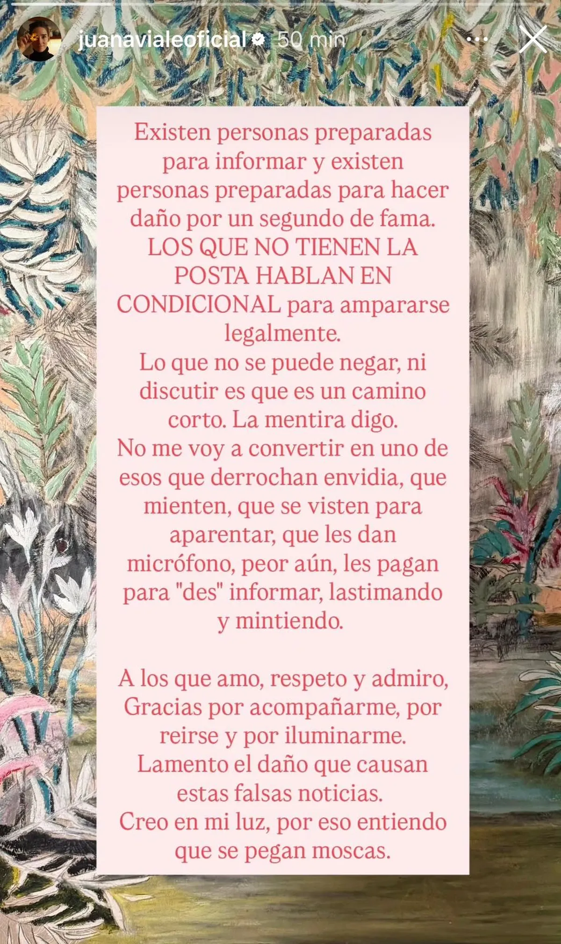 “Existen personas preparadas para informar y existen personas preparadas para hacer daño por un segundo de fama. Los que no tienen la posta hablan en condicional para ampararse legalmente”, arrancó la conductora en un posteo en la redes sociales.