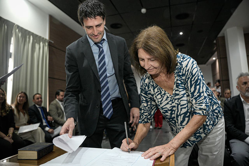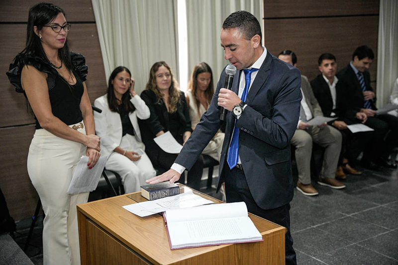 La ceremonia contó con la presencia de los jueces de la Cámara de Apelación y Garantías en lo Penal, Gabriel Vitale, Fernando Benítez y Luciano Noli, así como de los magistrados de la Cámara de Apelación en lo Civil y Comercial, Andrés Lucio Cunto y Gabriela Paola Delcorcho.