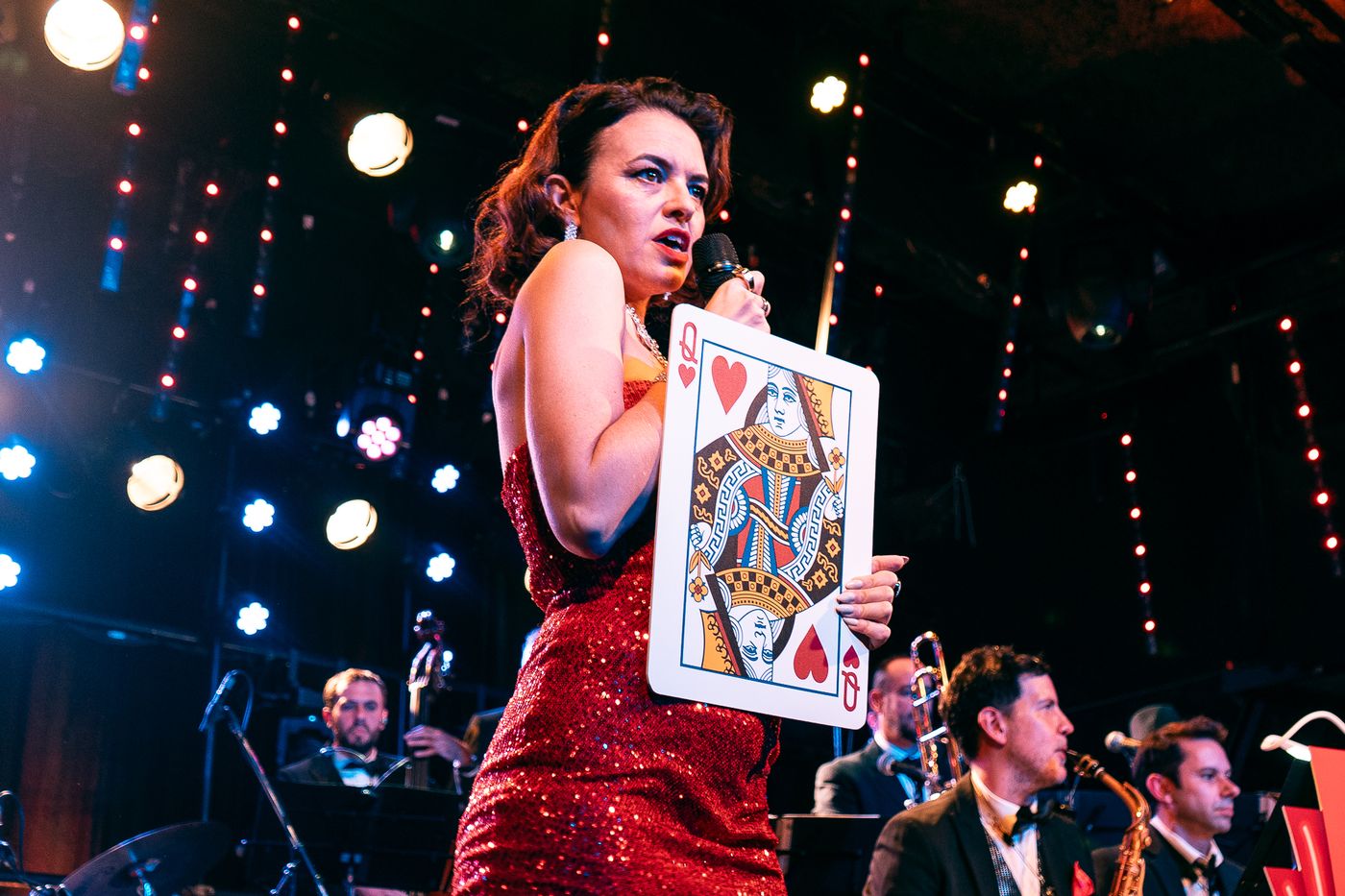—La raíz nace de un deseo personal. Por ejemplo, para armar el show que vamos a llevar a La Plata que se llama Ases del Swing, pensé: quiero armar un espectáculo que le proponga a la gente una fantasía. Y eso se transformó en: ¿a dónde puedo llevar a la gente? Es decir que la idea primigenia parte de mí. Después hay un gran trabajo que se hace con el director musical que es cómo construir la lista de las canciones. Pensamos en algunas para ciertos momentos y otras veces es al revés. Por ejemplo, este año que tenemos Believe de Cher quisimos llevarla hacia canción dramática lenta, jugar con los ritmos y los climas. Después hubo un trabajo muy intenso que hicimos con el director de la puesta en escena, Alejandro Viola, que además es el director de Los Amados. Yo quería que el lugar fuera un casino que tiene que ver con el estilo original de la orquesta, la época crooner de Frank Sinatra y Dean Martin en Las Vegas. Me parecía que ahí había una coherencia que tenía que ver con lo estético, lo musical y lo histórico que hacía cuadrar lo del casino, y pensarnos nosotros como medio “atorrantes” haciendo algo medio turbio, un poco perdedores. Fue muy divertido pensar el guión y cómo transitar el show.