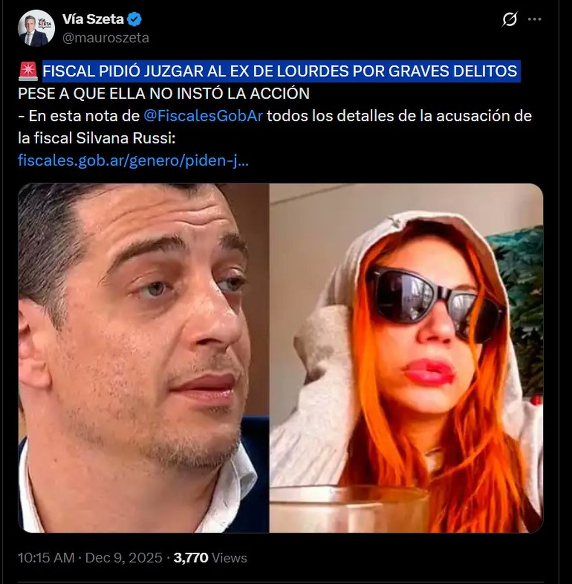 La fiscal Silvana Russi, interinamente a cargo de la Fiscalía Nacional en lo Criminal y Correccional N°43, solicitó que Leandro García Gómez, el exnovio de la cantante Lourdes Fernández sea llevado a juicio oral por diversos episodios de violencia de género ocurridos entre enero y octubre de este año contra la integrante del grupo musical Bandana.