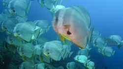 This photo taken on December 5, 2024 shows a school of batfish in the Similan Islands in the Andaman Sea off Thailand's Phang Nga province. (Photo by Sebastien BERGER / AFP) (Photo by SEBASTIEN BERGER/AFP via Getty Images)