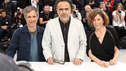 CANNES, FRANCE - MAY 20: Gael García Bernal, Alejandro González Iñárritu and Martha Sosa pose during the