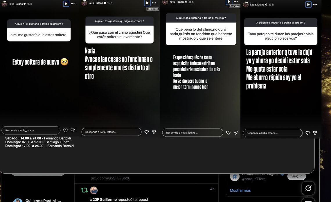 La confirmación de la separación llegó a través de diferentes posteos en las historias de Instagram de «La Tana», en el marco de una serie de preguntas y respuestas, un seguidor le escribió que le gustaría verla soltera, a lo que la exGran Hermano respondió de manera contundente “Estoy soltera de nuevo”.