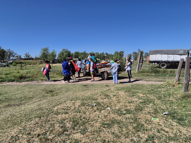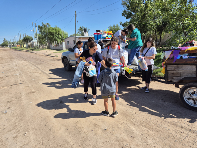 Con una camioneta tirando un carro llenos de juguetes (juntaron más de mil), pasaron por el barrio Evita (El Chaparral), luego La Trocha, PAM, Embarcadero, Plan Federal, entre otros, tomándose fotos y repartiendo alegría, cambiando un juguete o calzado por sonrisas, especialmente de los chicos, aunque los grandes también disfrutaron y agradecieron el gesto.