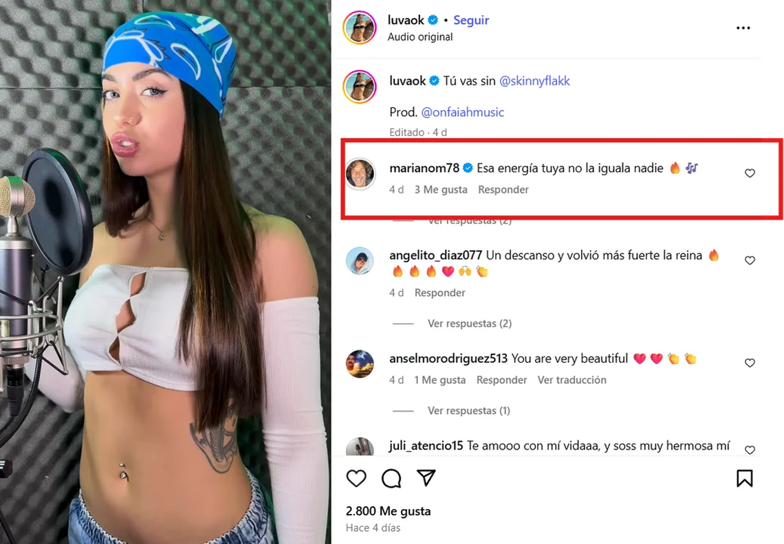 Fue el propio Mariano Martínez habría dado pistas de su noviazgo al dejar dulces comentarios en los posteos que Luva subió a Instagram cantando covers de canciones del momento.