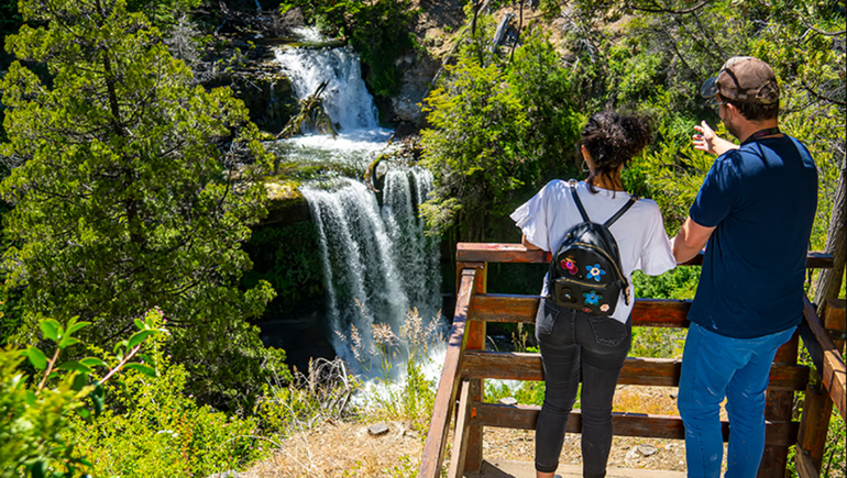 Ubicadas a pocos kilómetros del centro de Trevelin, estas siete cascadas ofrecen senderos para recorrer, miradores estratégicos y una vista panorámica del Valle 16 de Octubre que permite apreciar toda su extensión.