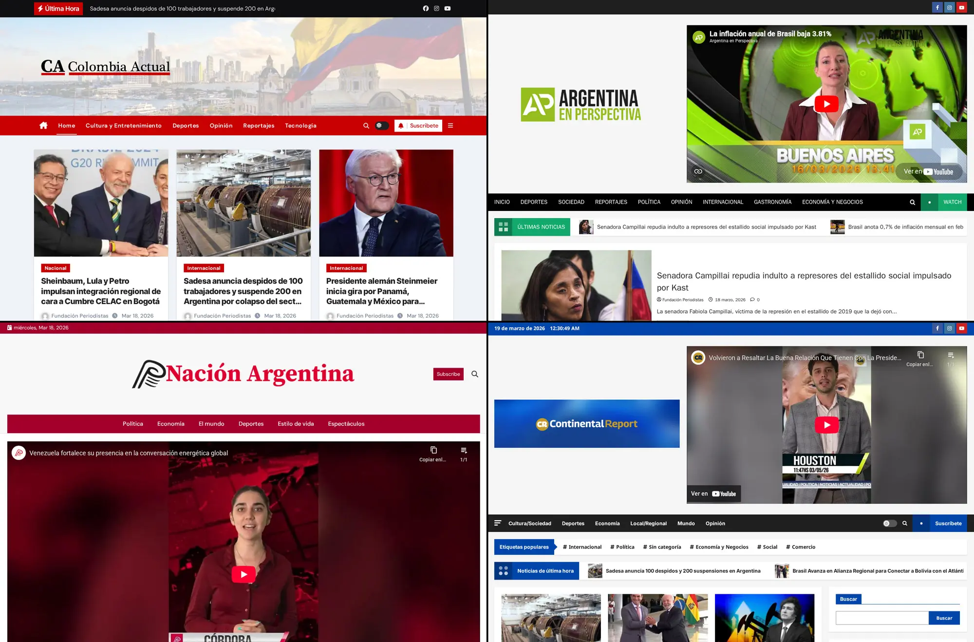 El programa también permitió identificar otro patrón. En varios sitios de la red aparecía publicado el mismo artículo con titulares distintos y redacciones adaptadas al supuesto país de origen de cada portal, pero con un núcleo narrativo casi idéntico: una misma nota base es reescrita con variaciones y distribuida en distintos portales para aparentar cobertura local independiente.