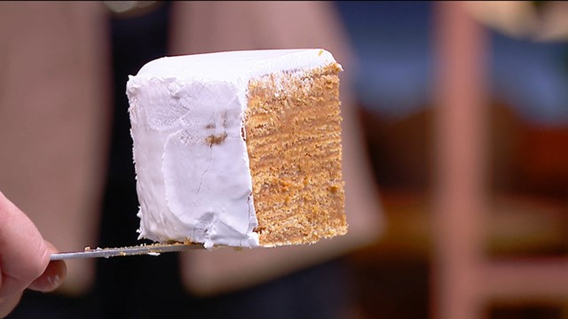 Una vez formadas las duplas, debieron preparar un plato para festejar el Día de la Patria en la Revolución de Mayo. El chef Damián Betular, oriundo de Dolores, el primer pueblo patrio- , presentó como ejemplo, la torta argentina que consta de 2 5 capas con dulce de leche y glaseado real.