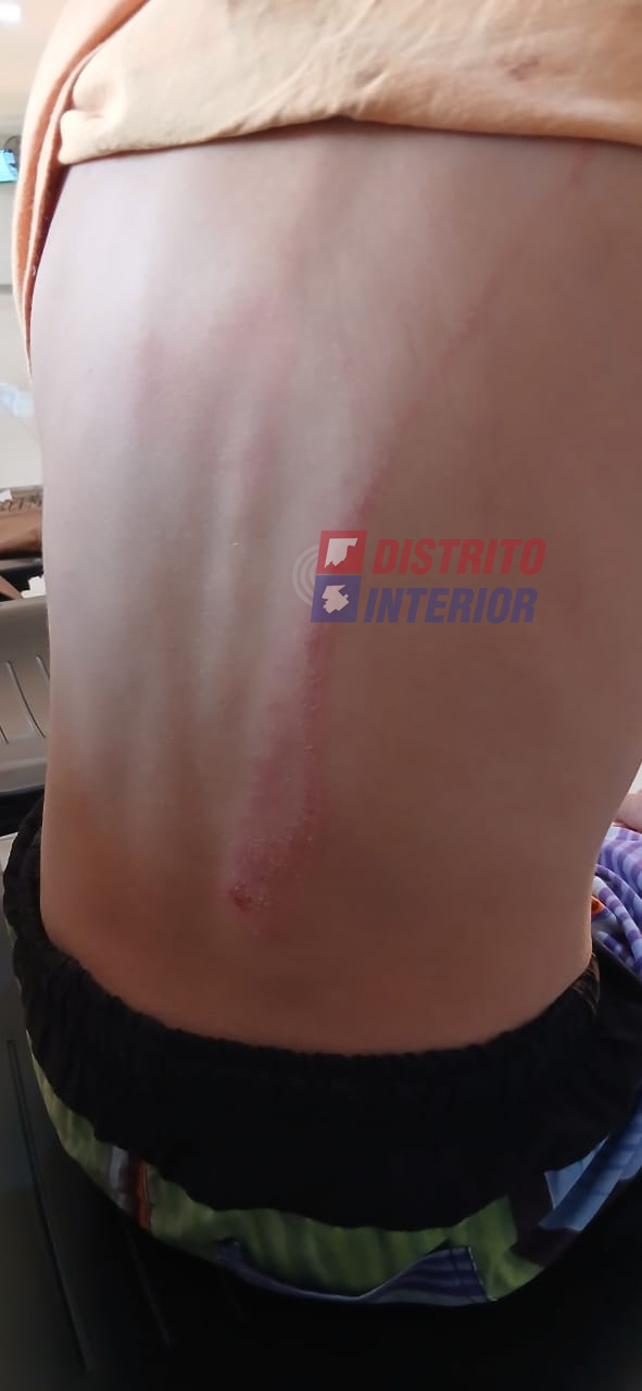 Tirado, dolorido y con dificultades para respirar, de acuerdo a lo relatado por su papá a Distrito Interior, una cecina lo asistió y acompañó hasta su casa que se encuentra a unas tres cuadras del sitio donde ocurrió el incidente.