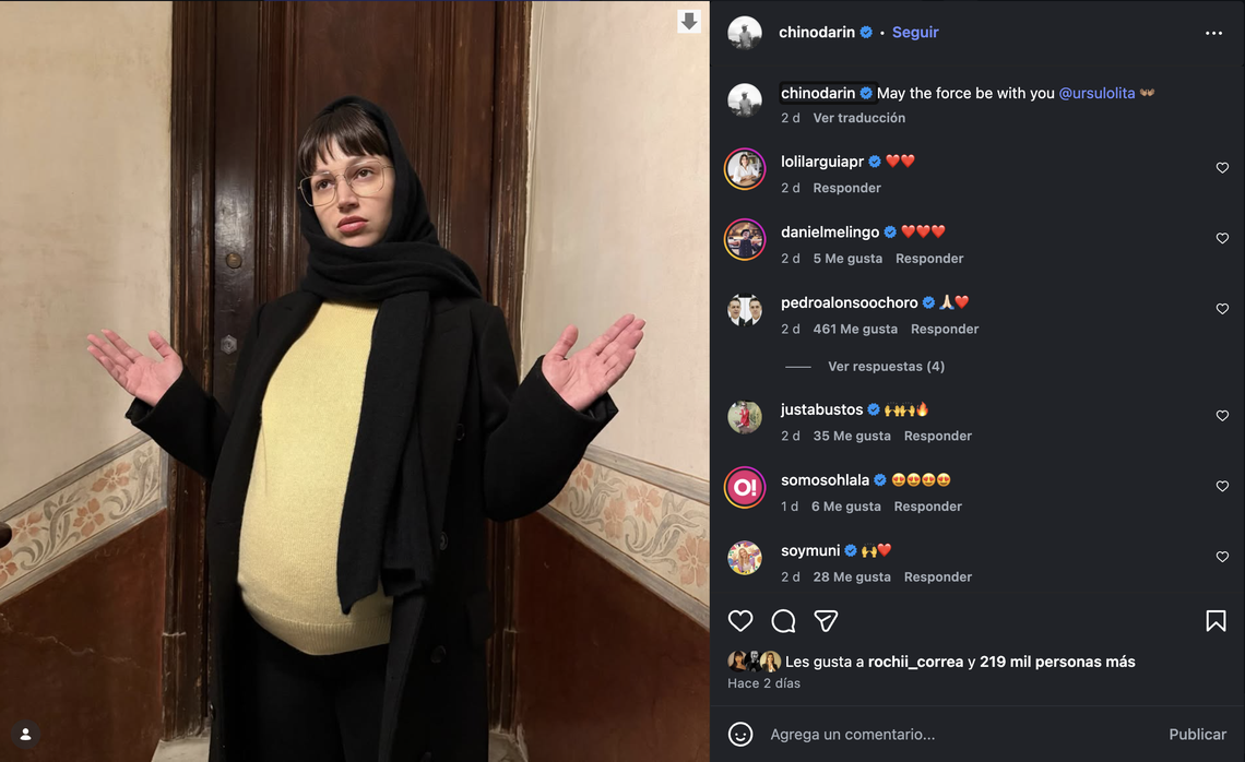 Mientras que El Chino publicó una foto de su pareja con una gran panza, la última de ella embarazada, y le deseó «May the force be with you (que la fuerza te acompañe)».
